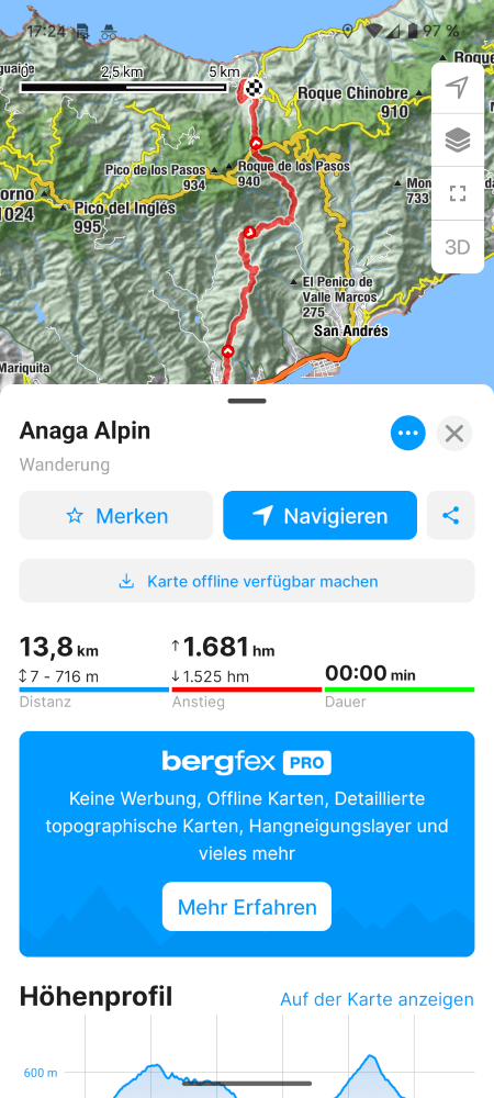 Ich selbst benutze gerne Outdooractive, gelegentlich auch die App Alpenvereinaktiv, die auf Outdooractive basiert. Es gibt natürlich viele weitere Apps. Das Vorgehen ist am Smartphone im Prinzip aber bei allen Apps ähnlich.
