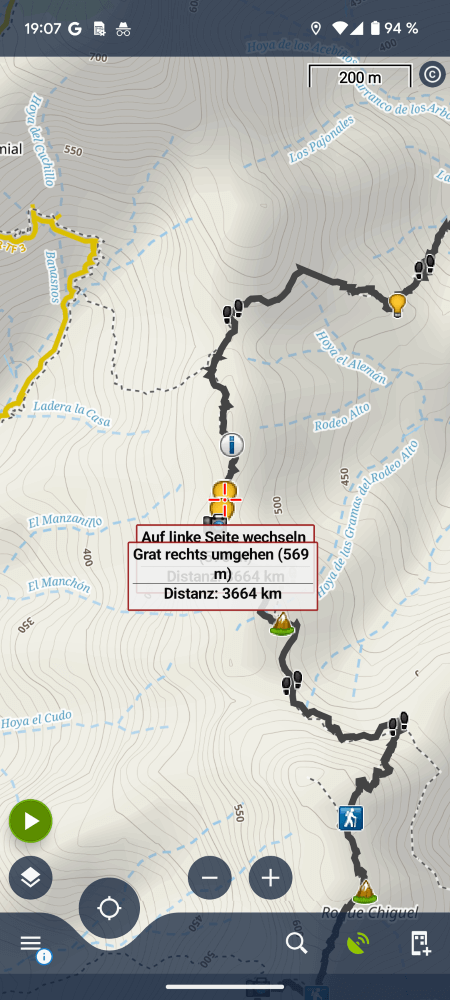 Bei Outdooractive ist es ähnlich. Die manuellen Wegpunkte werden hier zwar importiert, aber bei der Navigation nicht mehr angezeigt. Ich glaube, das liegt daran, dass diese Apps eigene Systeme zum Markieren von Wegpunkten haben und dann durcheinander kommen.