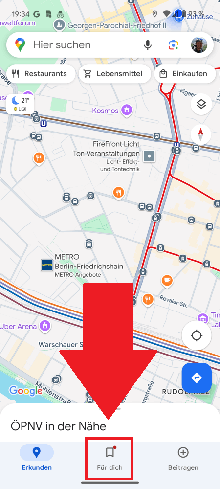 1. Klicke im Hauptbildschirm von Google Maps links auf das Buchzeichen „Gespeichert“