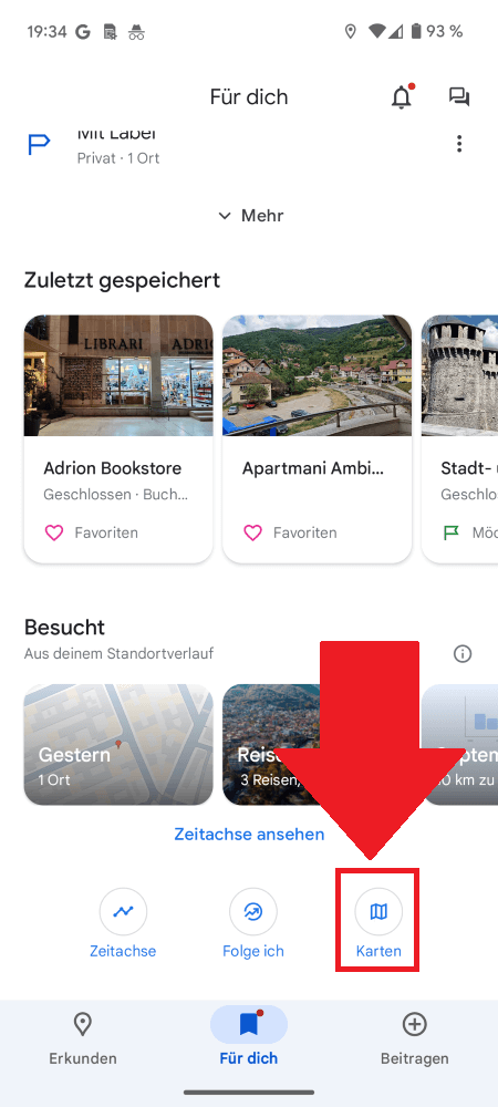 Anschließend ist die Datei bei Google Maps gespeichert. Du kannst sie im Menü Karten jederzeit aufrufen.