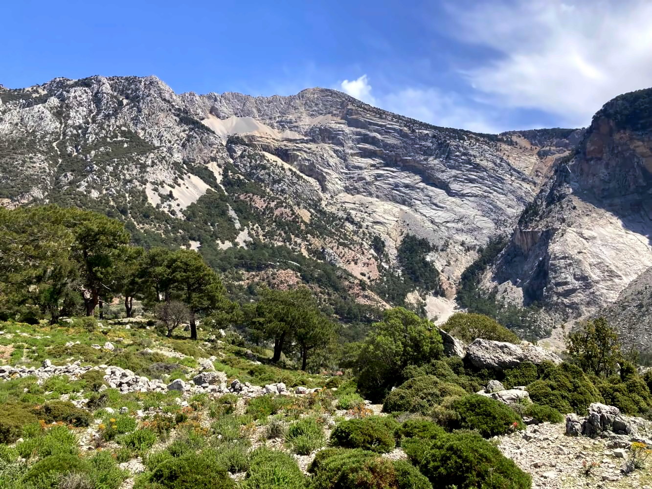 Beim Essen treffe ich Andreas aus Fulda, der ebenfalls einen Teil des Lykischen Wegs läuft. Im Unterschied zu mir aber nur bestimmte Etappen. In ein paar Tagen will er weiter nach Norden. Ein Stück weit gehen wir zusammen, tauschen uns über Wanderungen aus, die wir schon gemacht haben, darunter z.B. den berühmten Laugavegur Trail in Island. An einer Quelle im kühlenden Schatten eines Baumes trennen sich unsere Wege. Es soll die einzige Begegnung mit einem deutschen Wanderer auf dem gesamten Lykischen Weg für mich bleiben.