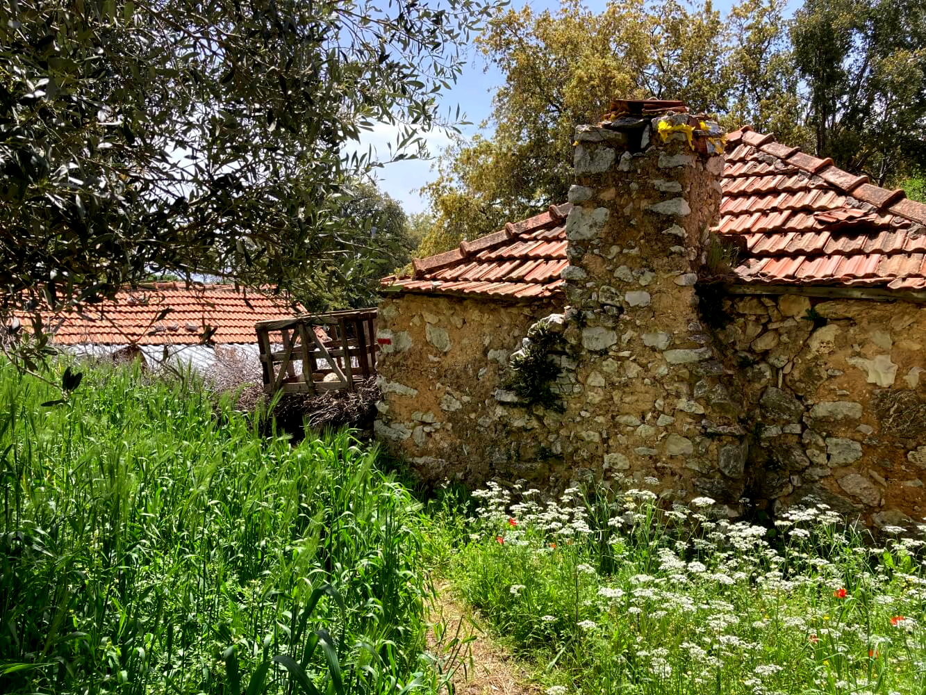 Lange kann ich mich aber nicht mit meinen romantischen Anwandlungen aufhalten. Hinter Kalabantia steigt der Weg recht heftig auf. In vielen steilen Serpentinen geht es über einen antiken Weg von Meereshöhe bis über 500 Meter hoch. Schon ein ganz gutes Workout am frühen Morgen. Eine knappe Stunde kämpfe ich mich nach oben. Dann erreiche ich die Hochebene, wo sich Felder und blumenübersäte Wiesen mit leuchtendem Klatschmohn abwechseln.
