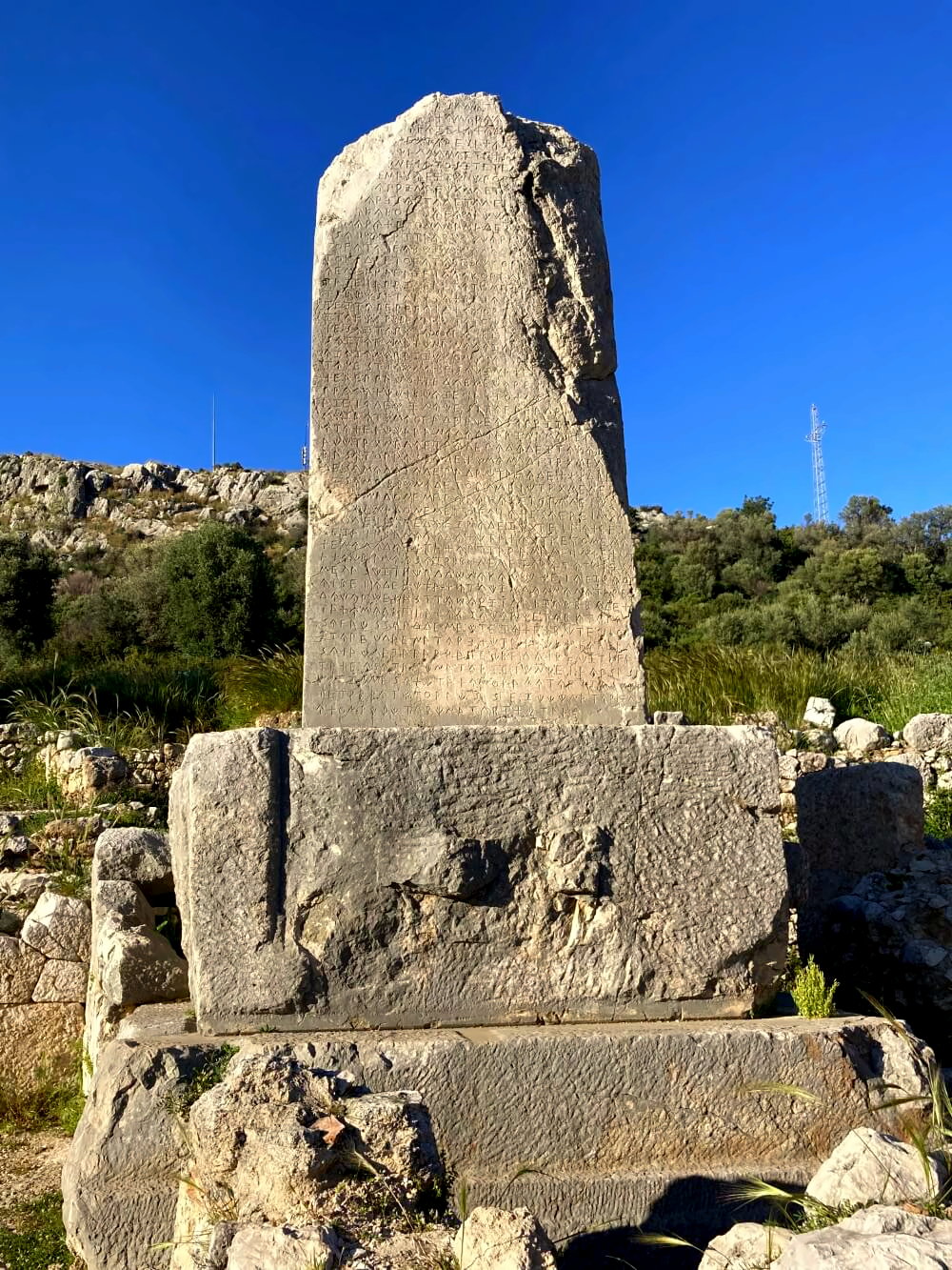 Wasser gibt’s zwar nicht. Aber nachdem das Zelt steht, gehe ich nochmal runter zum Kiosk bei Xanthos und decke mich für die Nacht ein. Am Nachmittag schaue ich mir dann ausführlich die Ruinen an. Höchst beeindruckend. Das Gelände ist sehr weitläufig und wie fast immer in der Türkei kann man nach Lust und Laune quer herumspazieren, wie man will. Immerhin stehen heute an absturzgefährdeten Stellen schon Warnschilder, das gab es früher noch nicht.