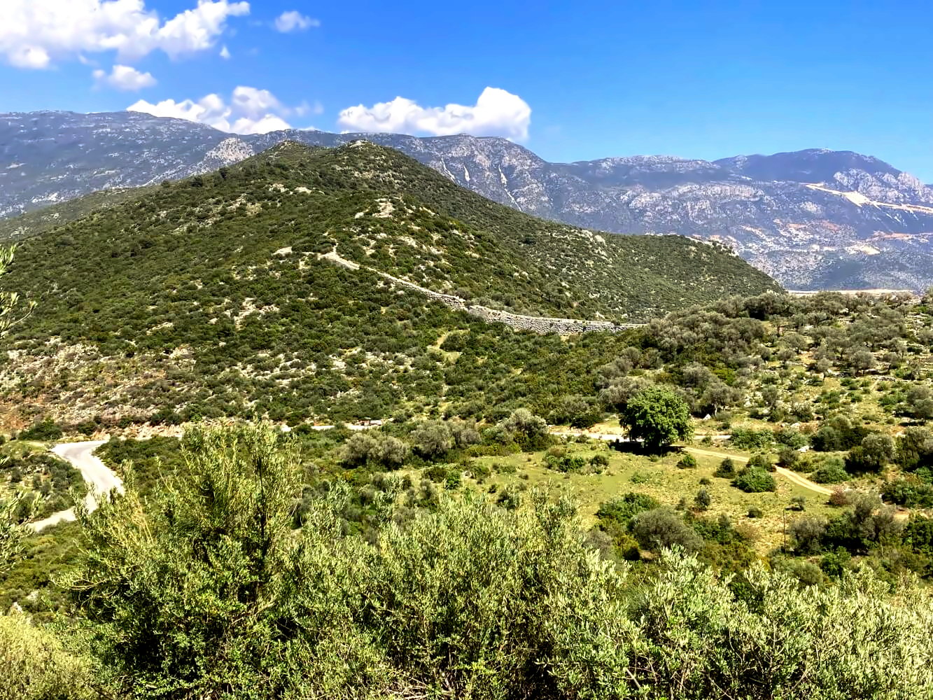 Nach Üzümlü laufe ich teilweise durch Olivenhaine, danach sehr lange auf einer Piste nach Akbel. Einige ganz kurze Abschnitte verläuft der Weg durchs Unterholz neben der Straße. Es wirkt schon so ein bisschen, als ob jede verfügbare Stelle zum genutzt wurde, um einen Weg zu bauen. Wirklich viel Platz ist zwischen den Dörfern aber nicht und die alten Verbindungswege sind eben heute Dirtroads. Als ich in Akbel ankomme, bin ich ziemlich demotiviert und werde auch direkt mal von einem unfreundlichen Straßenhund angekläfft.