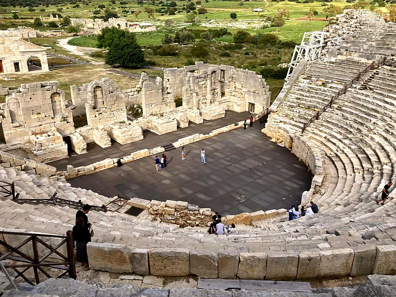 Am nächsten Morgen entscheide ich spontan, einen Tag Pause einzulegen. Ich wechsele in das schöne Patara Caretta Hotel oberhalb des Ortes, gönne mir erstmal eine Dusche und faulenze den halben Tag in meinem Zimmer herum. Am Nachmittag schaue ich mir die Ruinen an. Das Theater ist beeindruckend und sehr gut erhalten. Interessanter finde ich einen überfluteten Teil der alten Prachtstraße, in dem sich die Frösche eingenistet haben und um die Wetter quaken.