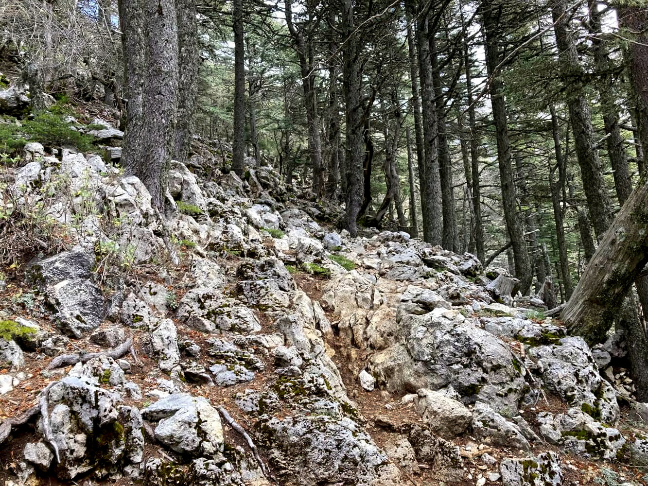 Für den Abschnitt entlang der Nordflanke des Tahtalı empfehle ich alpine Erfahrung. Nicht in dem Sinn, dass du fortgeschrittene Kletterkünste benötigst. Aber das Gelände ist schon ziemlich abschüssig, die Wege schmal, rutschig und an ein paar Stellen auch ausgesetzt. Wer so etwas noch nie live gesehen hat, könnte hier Probleme bekommen. Bei Regen, Schnee oder Nässe würde ich von der Route abraten – dann wird es wirklich gefährlich.