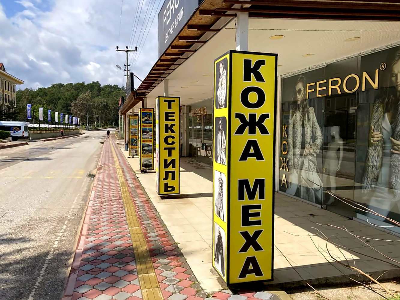 Kurz vor Tekirova gibt es eine schöne große Wiese in der Nähe eines Bachs. Eigentlich ein guter Ort zum Zelten, leider aber in Hörweite der hier verlaufenden Autobahn. Das ist dann doch nicht so schön, stattdessen laufe ich noch ein paar Kilometer weiter und suche mir ein Hotel. Wie auch die anderen Ferienorte an der Küste ist das Örtchen fest in russischer Hand. Das geht hier soweit, dass sogar die Schilder der Läden und Restaurants kyrillische Buchstaben tragen.